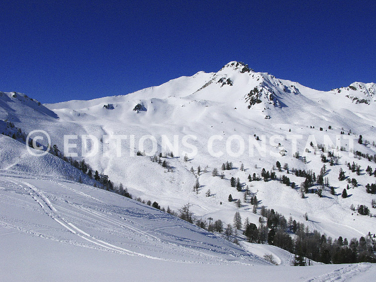 Le Grand Charvia et ses pentes accortes que l’on atteint de puis le sommet du télésiège du Rocher de l’Aigle.