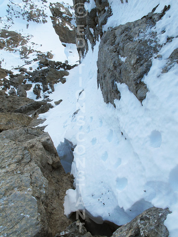 L’étroit couloir de descente / the narrow couloir skied – Pointe 2740 m de la Dent du Diable – Massif des Cerces