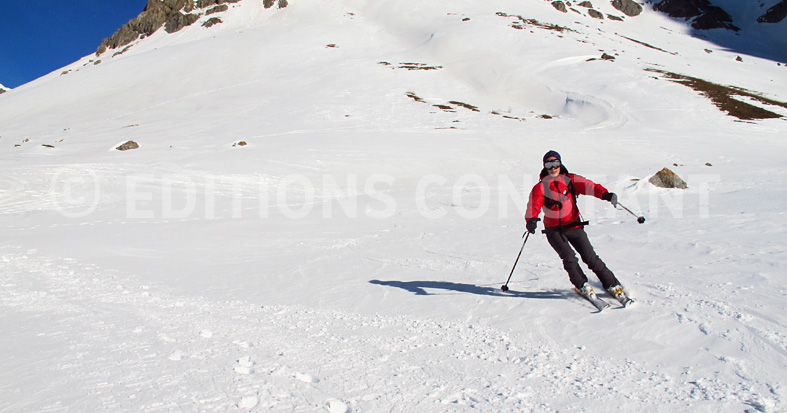 In addition, the two last gullies I have christened last week: cold snow in the climbing up couloir and hard snow sculptured by a very windy week in the descent couloir that I have skied.