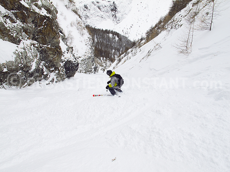 After the technical entrance of the COULOIR des FREAUX it becomes larger and less step. We were lucky with the fresh and very soft snow.