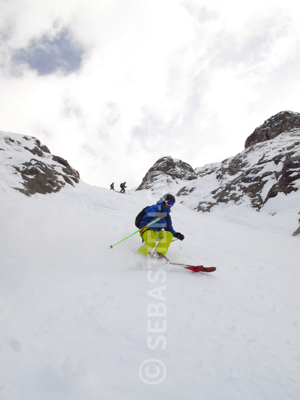 Journée de ski Hors-piste à la Grave début Février 2012 pour SNOWLEGEND. Une neige froide et souple nous a permis d’aller découvrir de “grands itinéraires” au Départ du glacier de la Girose. Ces lignes nécessite une manteau neigeux stable et une neige souple pour s’y engager sereinement avec des clients. Avec le groupe nous avons parcouru “Chirouze Central”. dans ces couloirs étroits une retenue dans le style du ski et un très bonne maîtrise techniques sont indispensables pour ne jamais aller à la faute et / ou à la chute. Ces quelques ligne résument un peu mon approche professionnelle de descentes à ski qu’il convient d’apprécier à leur juste valeur. En tout cas Merci à l’équipe “Sylvaine/Greg/Jeff”, de vieux habitués de Snowlegend, pour avoir accueillis et initiés des personnes dont c’était le baptême de ce que nous appelons à La Grave “des itinéraires” et aussi pour leur fairplay, leur sobriété qui m’ont permis de travailler avec un maximum de confiance.